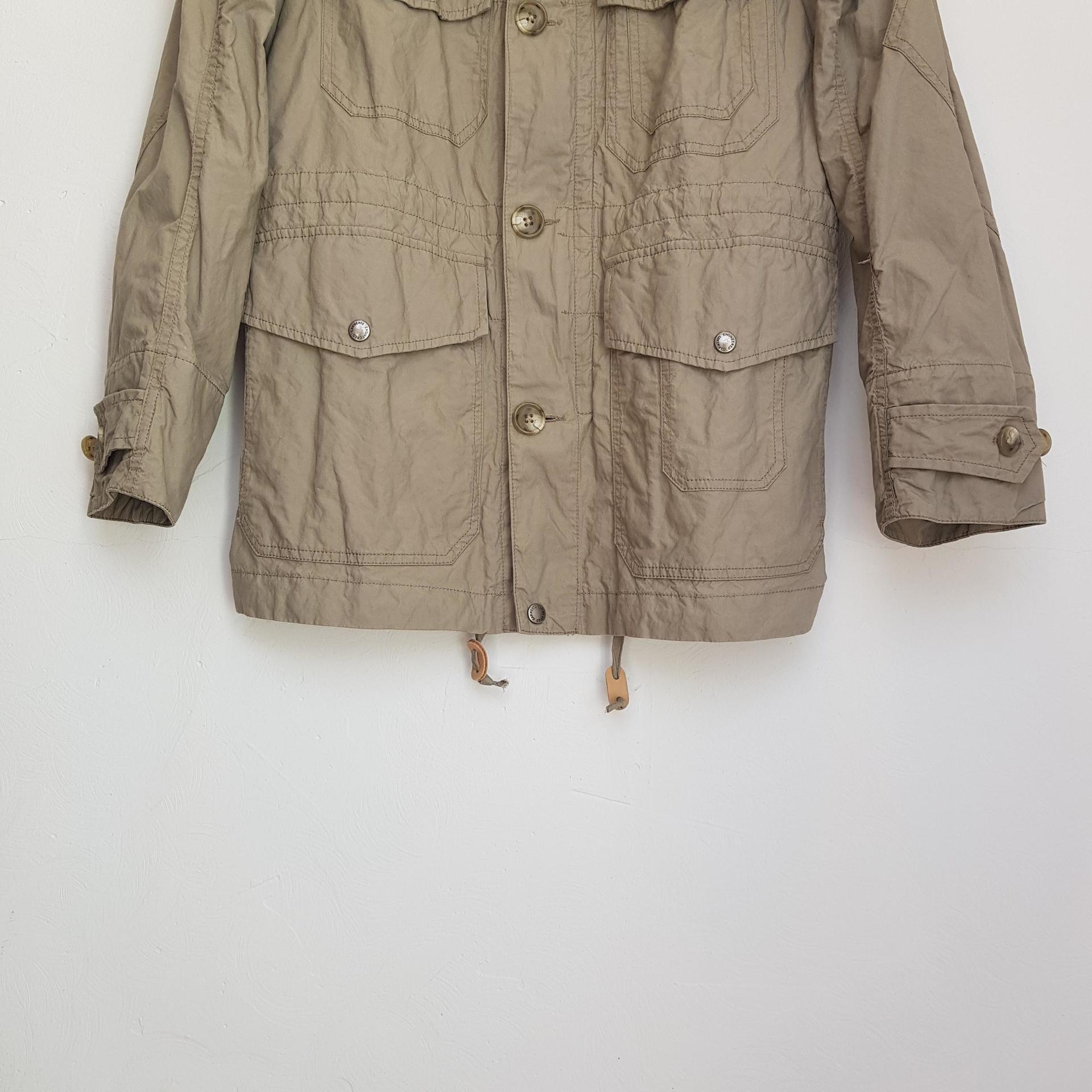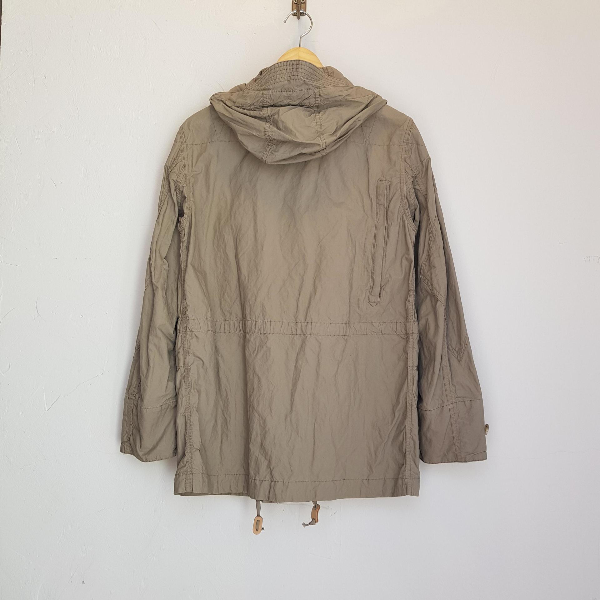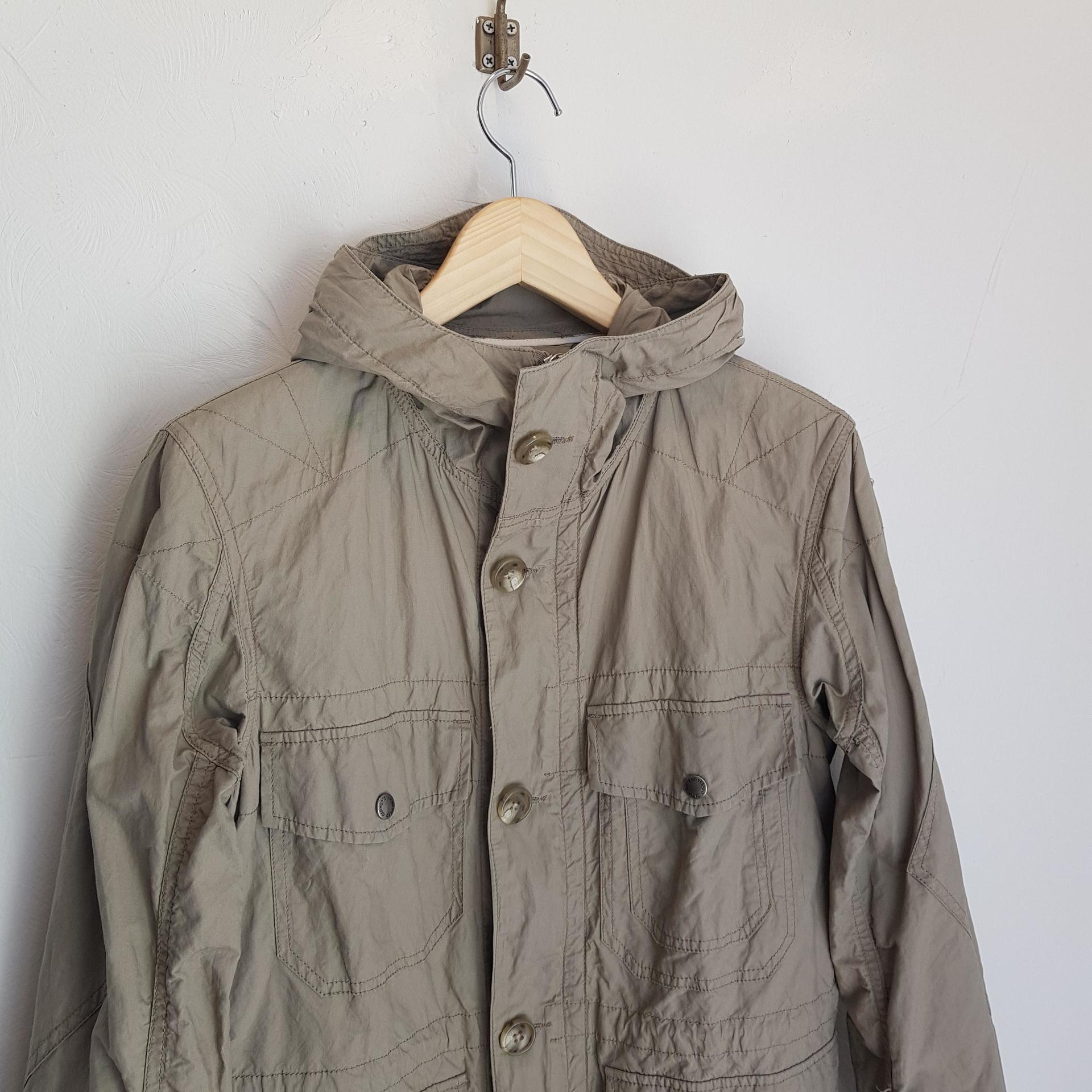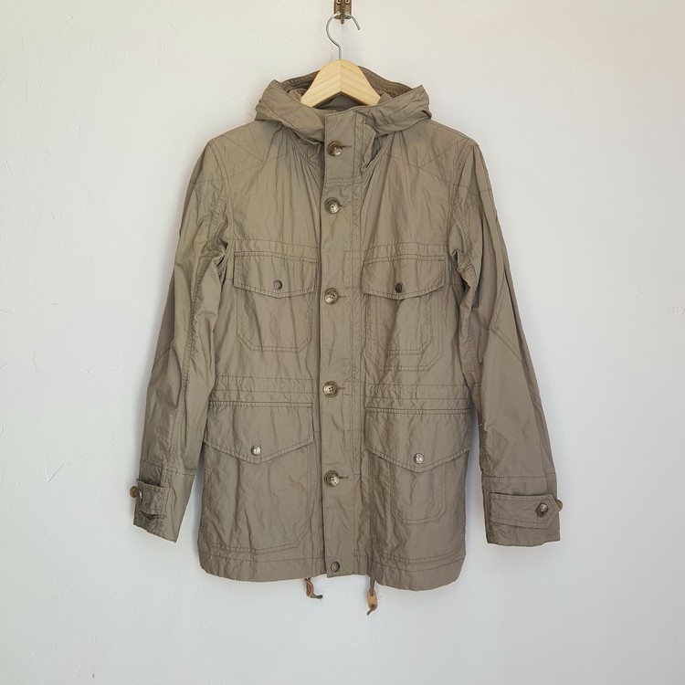 베이지-카키 색감의 비교적 얇은 두께감의 필드파카 제품입니다.